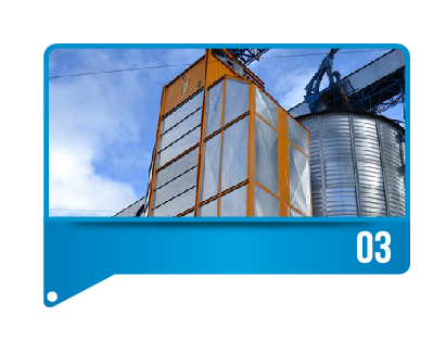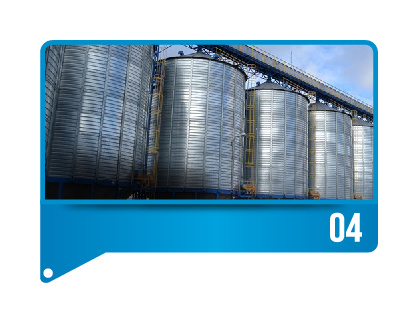 Precleaning and drying processes take place to ensure suitable storage conditions. Thermometry, aeration and quality assurance are implemented while grains are stored in the tanks.